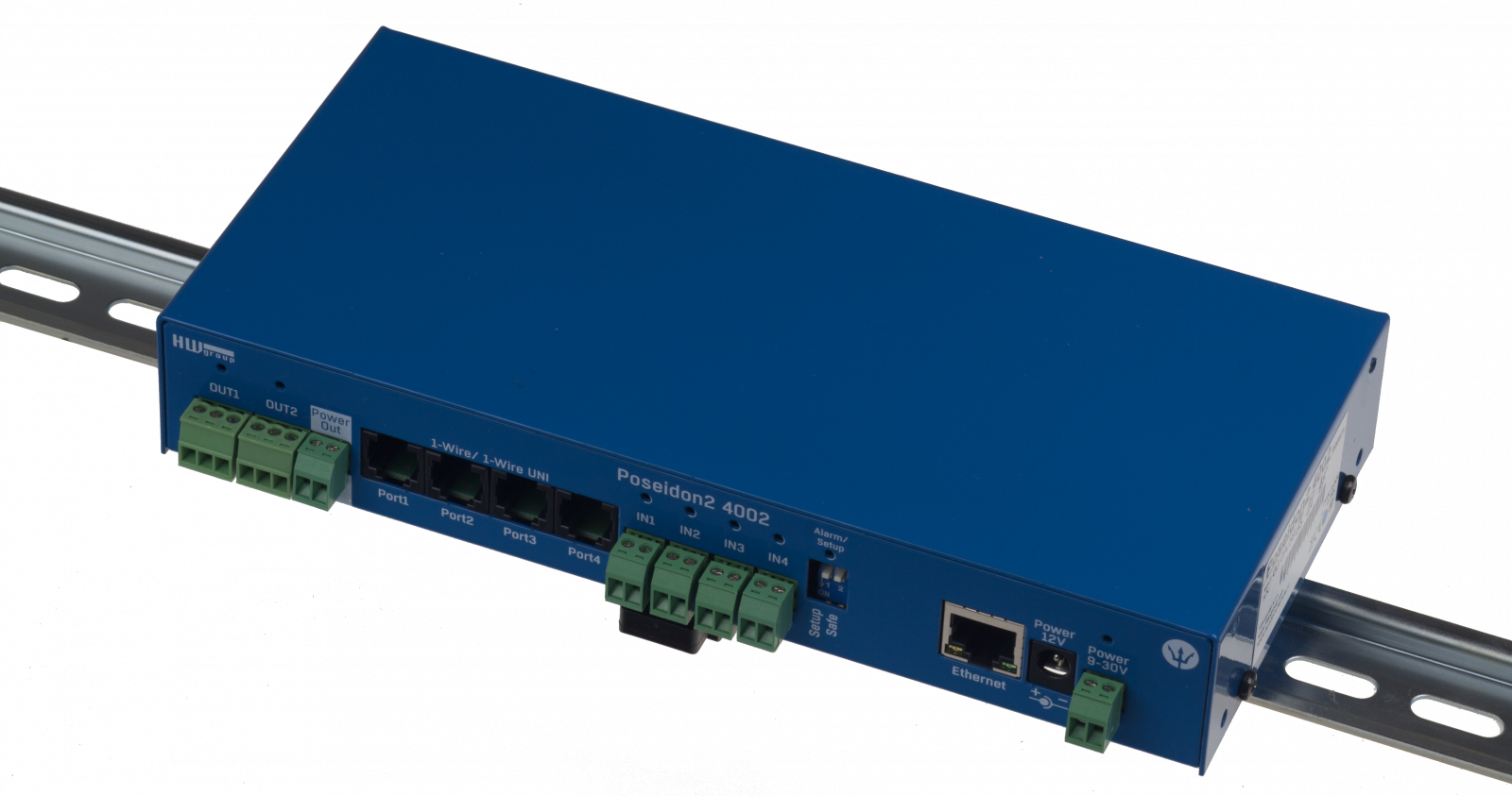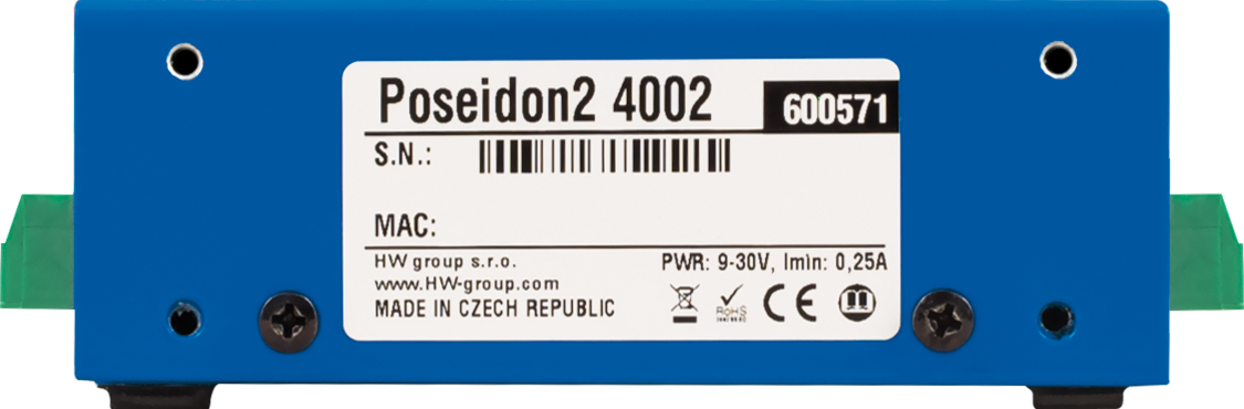 Poseidon2 4002 can connect up to 40 sensors (16 via 1-Wire UNI/1-Wire + 24 via RS-485), provides 12 digital dry contact inputs (DI), 8 virtual digital outputs and allows control of 4 relay outputs (NO/NC).